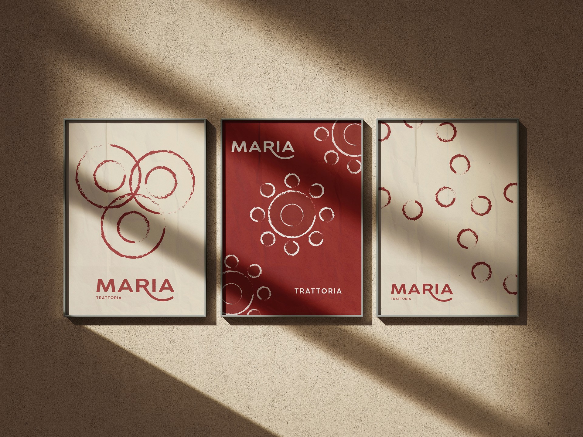 During my Junior design internship at Peter & Paul, the team challenged me to ideate and develop an early stage brand identity for a new Italian restaurant called "Maria" Set to open on Wellington Street, the restaurant is a personal project for Jack Wakelin and Tom ‘Ronnie’ Aronica, taking inspiration from Ronnie’s Sicilian heritage for what will become their first city centre venture.