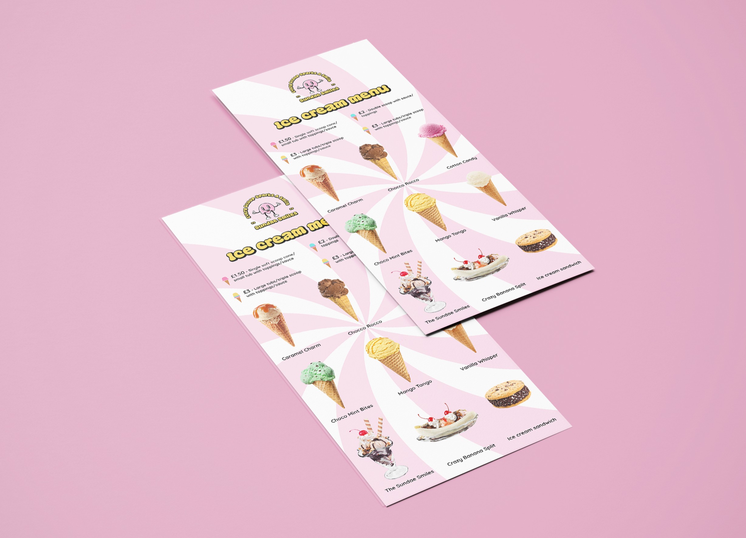 Sundae Smiles is an ice cream brand that sells various ice creams and delicious desserts. This is a personal project that I undertook to portray my illustration, typography, design and freelancing services. The justification behind the establishment of an ice cream brand is that I wanted to partake in exploring brands with a different target audience to portray my diverse creative mindset and processes. Throughout this project I've played versatile roles to contribute to the brands success which enhanced my skills and knowledge as a designer and freelancer so that it aligns with the creative industry